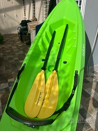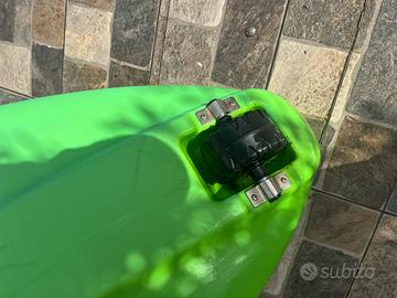 Vengo kayak monoposto verde per inutilizzo, ci sono delle grattatine leggere qui e la ma nulla che compromette la funzionalita e il galleggiamento, è sbiadita da un lato per il sole.