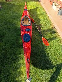 vendo stupendo kayak super performante molto stabile anche grazie al timone direzionale a pedali e molto veloce 3 gavoni stagni con tappi appena sostituiti cime perimetrali nuove non ha bisogno di nessun lavoro lunghezza 5 metri e 22 lo do munito di pagaia professionale e paraspruzzi
