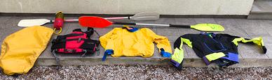 Causa inutilizzo vendo Kayak Piranha Acrobat 270 nero, un po' datato ma ancora in buone condizioni, più la seguente attrezzatura: 2 pagaie (vedi foto) 2 giacche da acqua (vedi foto) 1 corda da lancio Ozone 1 giubbotto salvagente Ozone taglia L 1 copripozzetto. il kayak è equipaggiato con poggia schiena, due sacche di galleggiamento e tappo svuotamento. tutto il materiale è ancora in buone condizioni. Solo ritiro a mano a Treviso. No spedizione. Contattare solo se seriamente interessati.