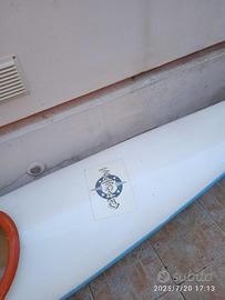 KAYAK DA COMPETIZIONE (CAPO HORN) IN VETRORESINA LUNGHEZZA M. 4.90. peso 19 Kg. Prezzo non trattabile. Da ritirare in loco.