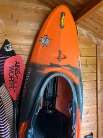 Kayak canoa da torrente pyranha modello burn taglia m con pagaia ainsworth misura 195.Ottimo stato segni da normale utilizzo.