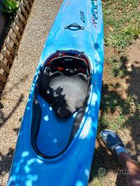 Kayak da fiume allround, ideale sia per scuole che per discese anche di più giorni o su fiumi di volume. Fornito di serie con puntapiedi a piastra antisfondamento, sedile ergonomico regolabile e imbottito, premicosce regolabile e imbottito, schienale anatomico, longherone anteriore e posteriore, tappo di svuotamento, maniglie di trasporto.