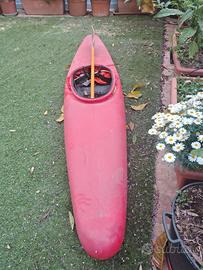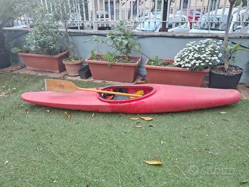 Kayak in PVC indistruttibile. Mi ci sono divertito tanto al mare. Ha normali segni di usura, ma è in ottimo stato con pagaia in legno, gonnellino e gonfiabili per evitare l'entrata dell'acqua. Non lo uso da tempo ho deciso di venderlo per questo motivo.