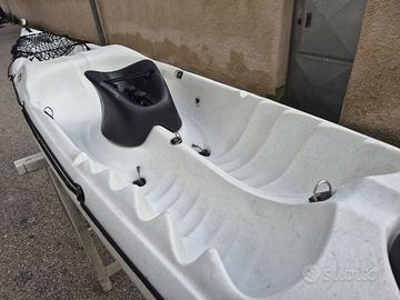 Kayak RTM MID-WAY – Sit-On-Top Veloce (Ottime Condizioni) Kayak RTM Mid-Way colore bianco, usato ma in condizioni eccellenti. È il modello ideale per chi cerca la stabilità di un sit-on-top senza rinunciare alla velocità e alla scorrevolezza di un kayak da mare. Utilizzo: Mare, lago e fiumi. Perfetto per fitness ed escursioni di più giorni. Caratteristiche: Lunghezza 440 cm, peso 23 kg, portata 140 kg. Equipaggiamento: Gavone anteriore stagno, rete elastica posteriore, sistema premi-cosce "Carl System" per un controllo superiore. Stato: Integro, senza riparazioni, pronto all'uso. Costo: €580,00 Possibilità di trasporto entro 50km (+€100).