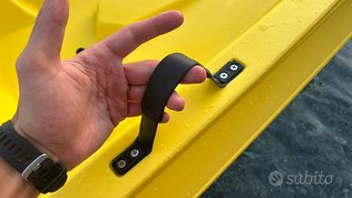 Vendo kayak sit on top biposto, colore giallo, ideale per gite al mare, lago o fiume. Il Kayak è comodo, sicuro e adatto zja a principianti che ad appassionati. - 2 posti con schienalino giá invluso per una seduta confortevole - 2 pagaie regolabili in lunghezza - Vano posteriore con retina elastica, perfetto per riporre ciabatte, zainetro o altri oggetti personali - Colore giallo acceso: ottima visibilità in acqua e design sportivo Il kayak è in perfette condizioni (usato 3 mesi), pronto all'uso! Occasione perfetta per chi vuole godersi lago, fiume o mare in comodità e sicurezza! Prezzo trattabile.