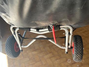 VENDO IN PERFETTO STATO KAYAK PER DUE PERSONE MAX 200 KG attrezzato con carrello per canoa leggerissimo - con valvole Boston per facile inflazione e rapida deflazione; manometro per controllo pressione incluso, inclusa la pompa a mano doppia azione Sevylor, due sedili gonfiabili per kayak facili da regolare e rimuovere ; comfort mentre si pagaia con 1 pagaia inclusa più 2 salvagenti inclusi + vela per canoa pratica e leggera + borsa trasporto e telo copri kayak acetato.
