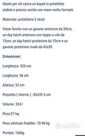 IL KAYAK E IL PERFETTE CONDIZIONI MOSTRA DEI NORMALI SEGNI SULLO SCAFO COME DA FOTOGRAFIE
