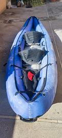 Kayac biposto in perfette condizioni, sempre conservato all'asciutto, con manotremo di controllo pressione di gonfiaggio e pompa per gonfiarlo.