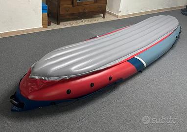 kayak sevylor Tahiti plus, 3 posti, con valvole boston. Comprato nel 2024, come nuovo, usato solamente 2 volte. ideale per 2 adulti e un ragazzo. comprende: 3 sedili regolabili gonfiabili ergonomici; 2 pagaie, pompa per il gonfiaggio e borsa dedicata per il trasporto. No perditempo.