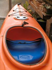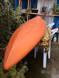 Kayak in polietilene lunghezza ca 4 m. larghezza ca 60 cm. con piccolo gavone impermeabile, completo di pagaia doppia