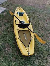 Dotazione Accessori Inclusi pagaia smontabile in alluminio sagome puntapiedi integrate seduta standard in neoprene con schienale rigido pieghevole 1 gavone con tappo nautico a cerniera 2 maniglie laterali maniglia a prua 1 tappo di drenaggio rete elastica vano posteriore elastico vano anteriore Caratteristiche Tecniche Lunghezza: 266 cm Larghezza: 69 cm Altezza: 21.5 cm Peso: 17.5 kg Carico Massimo: 110 Kg Materiale: polietiline ad alta intensità