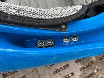 Il kayak ha delle riparazioni ai fori di fissaggio del sedile e dei premicoscie (vedi foto), ma sono stagni e non entra acqua.