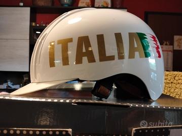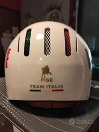 kep Italia della nazionale italiana con scritta in oro, ottime condizioni con cinturino marrone non rovinato né scucito, ancora con la sacchetta e la scatola originale consegnate dalla FISE
