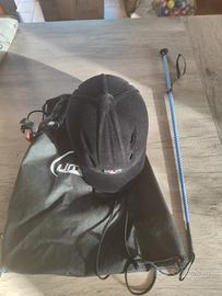 casco da equitazione usato pochissimo, pari al nuovo. l'imbottitura integra con possibilità di regolazione. Vendo con sacca e frustino.