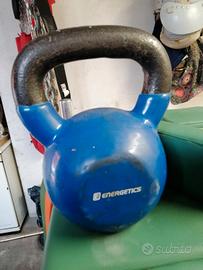 Kettlebell tipo RKC da 20 kg. Ricoperto in gomma vinilica per proteggere il pavimento.