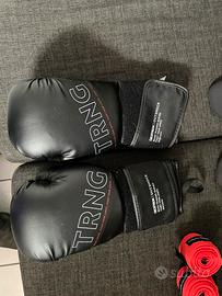 Guantoni piu fascie , parastinchi , casco della leone piu uno (decatlhon mai usato). Il tutto usato per 4 lezioni.