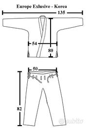 -della Europe Exlusive Korea, casacca cm 135 dai polsi, dalla spalla cm 80, il tronco cm 54 + pantalone cm 82 la gamba, cm 50 i fianchi + ci tura bianca E.20,00