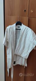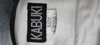 Kimono taglia 3/160,marca kabuki.Pantalone con elastico in vita,giacca con spacchetti laterali, cintura bianca inclusa.Condizioni ottime ,usato poco, tessuto 100% cotone .No spedizione ritiro a domicilio.