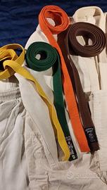 vendo nr. 4 Judogi completi di giacca, pantaloni e cinture, 100% cotone. Taglie 120, 130, 150 e 170 per euro 35 cadauno. Condizioni ottime.