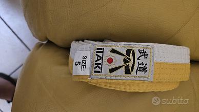 Kimono per Carate per adulti completo di cintura bianca e gialla , 100 % cotone misura 6 / 190 cm, usato solo una volta, vendibile anche al singolo pezzo.