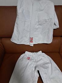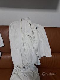 vendo 2 kimono da judo usati come in foto taglia 130 cm e 160 cm con cintura da bianca a verde. 25 €.