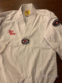Vendo kimono taekwondo per bambino/a . Misura cm 120. Completo di cintura.
