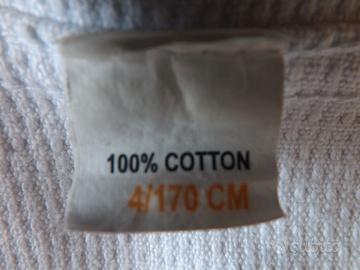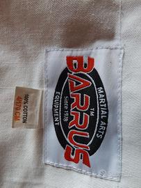 Cotone dal filato perlato: tessuto resistente. Ottima tenuta dell'umidità. Giacca dai 350 gsm, con fessure rotonde rinforzate. Delicato collare in schiuma EVA: migliore resistenza al soffocamento. 100% Cotone Pantaloni 230 gsm, 100% cotone con cuciture rinforzate nell'interno gamba e alla caviglia. Sistema di fissaggio ultraveloce con cordino. Kimono presanforizzato. Protezioni per paratibia, gomitiera e conchiglia. Articoli usati, non tutti, ma in ottime condizioni.