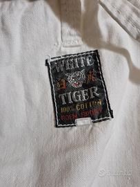 vendo kimono marca white tiger in cotone per judo, taekwondo etc il cartellino della taglia è cancellato ma lo usavo quando ero ragazzino e avevo 10-12 anni quindi è da bambino, ho messo le misure in foto che sono: