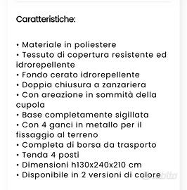 Kit 2 tende da 2 posti ciascuna con 4 materassi piu tappeto , ombreggiante turanti picchetti tutyo cio che serve tutto in kit