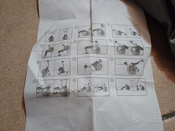 Strumenti per allenamento ginnico: elastici, palla con pompa per gonfiaggio, foglio esplicativo