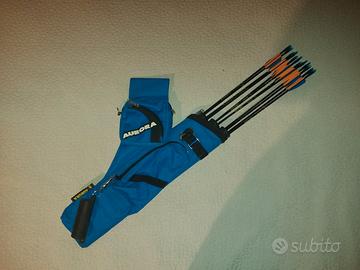 Vendo kit arco olimpico completo Tutto in ottimo stato, usato pochissimo. Comprende: - Riser Samick Athlete colore blu metallizzato, con impugnatura in legno - Flettenti 66/26 EOL CX200 Foam Fiber Competition - Corda - Sistema di mira completo (mirino + regolazioni) - Righello dima a T per misurazione e regolazioni - Frecce in carbonio "Carbon Flash" made in USA (q.tà 12) - Faretra Aurora Archer - Patella proteggi dita con finitura dorata - Protezioni braccio (q.tà 2) - Cavalletto - Accessori vari (chiavi, viti, piccoli ricambi) - Borsone SOMA con tasche multiple, spallacci, porta tessera identificativa