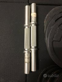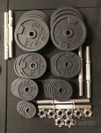 Vendo per inutilizzo i seguenti dischi/manubri/bilancieri Domyos: - 8 dischi da 5kg (foro 28mm) - 8 dischi da 2kg (foro 28mm) - 12 dischi da 1kg (foro 28mm) - 4 dischi da 0.5kg (foro 28mm) - 4 manubri a vite (2kg ciascuno) - 2 manubri a molla (2kg ciascuno) - 8 blocca dischi dadi filettati (0,5kg ciascuno) - Asta EZ (6kg) - Asta dritta Kit consigliato a chi vorrebbe allenarsi a casa (neofiti ed intermedi) che permette di fare tanti esercizi con un buon carico! Si arriva ad usare fino a poco più di 30kg per manubrio (32kg). Prezzo solo dischi 120€ Prezzo kit completo 200€ Alcuni dischi posso presentare segni di utilizzo Disponibile a rispondere ad eventuali domande ** ATTENZIONE, LEGGERE PER FAVORE ** Attrezzi NON venduti separatamente Consegna SOLO a mano in zona