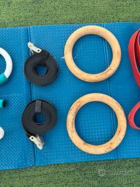 Set attrezzi ginnici NUOVI Manubri per flessioni Set Anelli 3 kit Elastici Barra in Accia Borsa ADIDAS Tappeto Nuovo mai usato