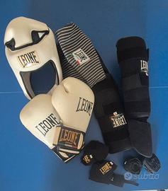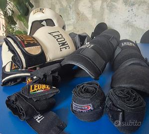 guantoni Leone #gn053 con borsa caschetto Leone combat #cs409 fasce Leone fasce Booster fight gear paratibia Leone taglia M