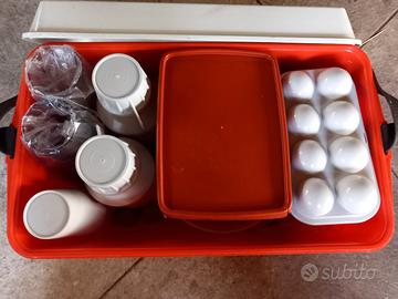 vendo valigia contenente 2 termos piatti bicchieri tazze e posate da campeggio. vintage .