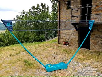 Kit completo da Badminton composto da 4 racchette e 4 volani, la rete, la base da riempire per evitare ribaltamento. Tutto il kit è usato, ma ancora in buone condizioni. Molto comodo per il trasporto perché quando è chiuso sta tutto nella sua valigia. NO SPEDIZIONI SOLO CONSEGNA A MANO.