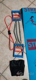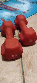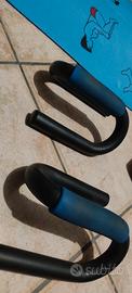 Lotto per allenamento a corpo libero e con pesi/resistenze. Il lotto comprende: -tappetino da stretching/yoga -2 manubri gommati da 4kg ciascuno -elastico, resistenze per avambraccio, resistenze per petto e abductor -guantini da allenamento -maniglie per esercizi da terra per petto e addome.