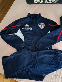Vendo kit FULGOR anno sportivo 2024-25, usato una sola stagione, indossato molto poco, taglia XS, composto da: A (borsone basic blu) - B (giacca DNA 3,0) - D+E (tuta jim giubbino + clayton pantalone) - F (bermuda cody) - G (polo alex) - H (t-shirt marvin blu),