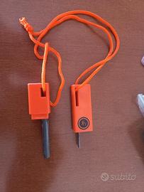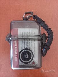 kit comprendente acciarino, istruzioni, starter per fuoco e custodia impermeabile. Mai utilizzato