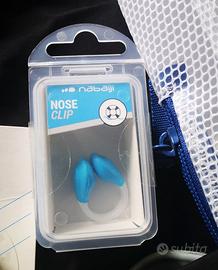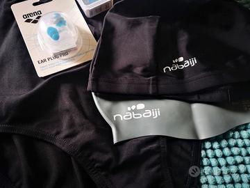Kit nuoto donna per piscina con costume, occhiali, tappi, cuffie e borsa. Tutto nuovo sigillato.