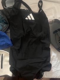 Sacca della Nabaiji con: -pinne Easyfin blu (39/40) -costume Adidas M -cuffie Adidas e Speedo -palette nuoto Nabaiji M