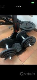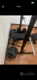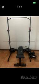 vendo Rack più kit 130 kg con 2 manubri e bilanciere e panca ad € 499