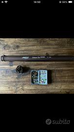 VENDO ANCHE SEPARATAMENTE Pronta all’uso. Canna 4 pezzi 9’ #3/4 nuova con suo tubo originale, nuova con ancora plastica sul manico in sughero. Mulinello Black Silver fly usato ma perfettamente funzionante con coda. Cofanetto porta mosche completo di 50 mosche.