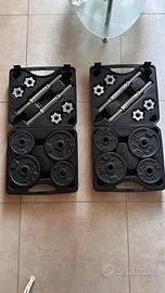Vendo 2 kit pesi decathlon + panca. Vendo in blocco o separatamente, nel dettaglio: