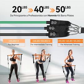 3 coppie di fasce fitness con livelli di resistenza di 20/40/50 lbs (9/18,2/22,8 Kg) possono essere utilizzate singolarmente o sovrapposte. La barra pilates presenta un design con fibbia regolabile, che consente di regolare lunghezza e intensità in base alla tua altezza e alle esigenze di allenamento. (adatto per 150-180 cm).