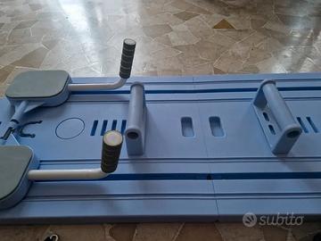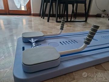 Kit completo e compatto per il reformer a casa. Vendo per lo scarso utilizzo che ne faccio, in realtà è molto comodo ed è un ottimo strumento per allenare il corpo, in particolare la zona del core. Unico e minimo difetto visibile in foto. Occupa pochissimo spazio, sia da aperto che da chiuso.