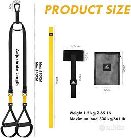 Vendo kit per allenamento in sospensione, agganciabile a spalliere o porte con accessori compresi nella scatola. il kit è nuovo e la confezione non è mai stata aperta, vendo perché ne ho acquistati 2 in un lotto conveniente, il kit è infatti in vendita sul mercato a 30/35€