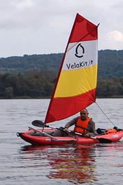 Vendo VelaKit Raffica, kit vela per canoa kayak Gumotex Decathlon Itiwit Tribord e altre, molto compatto da smontato (70cm 5kg) e si monta facilmente in 2 minuti. Ha due derive per navigare controvento di bolina. Chiamatemi per altre informazioni.