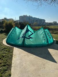 Kitesurf Kite North Orbit 11m Verde e Blu, adatto per BigAir e FreeRide, dotato di un ottimo hang-time. Kite perfetto per tutti i livelli, molto consigliato per progredire.