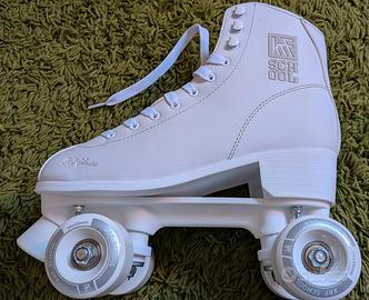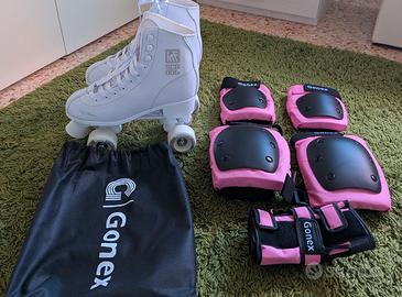 Vendo pattini a rotelle con stivaletto bianco taglia 39 del marchio KRF School utilizzati solo un paio di volte. Fornisco nel prezzo anche kit di protezione con gomitiere, ginocchiere e polsiere del marchio Gonex di colore rosanero.